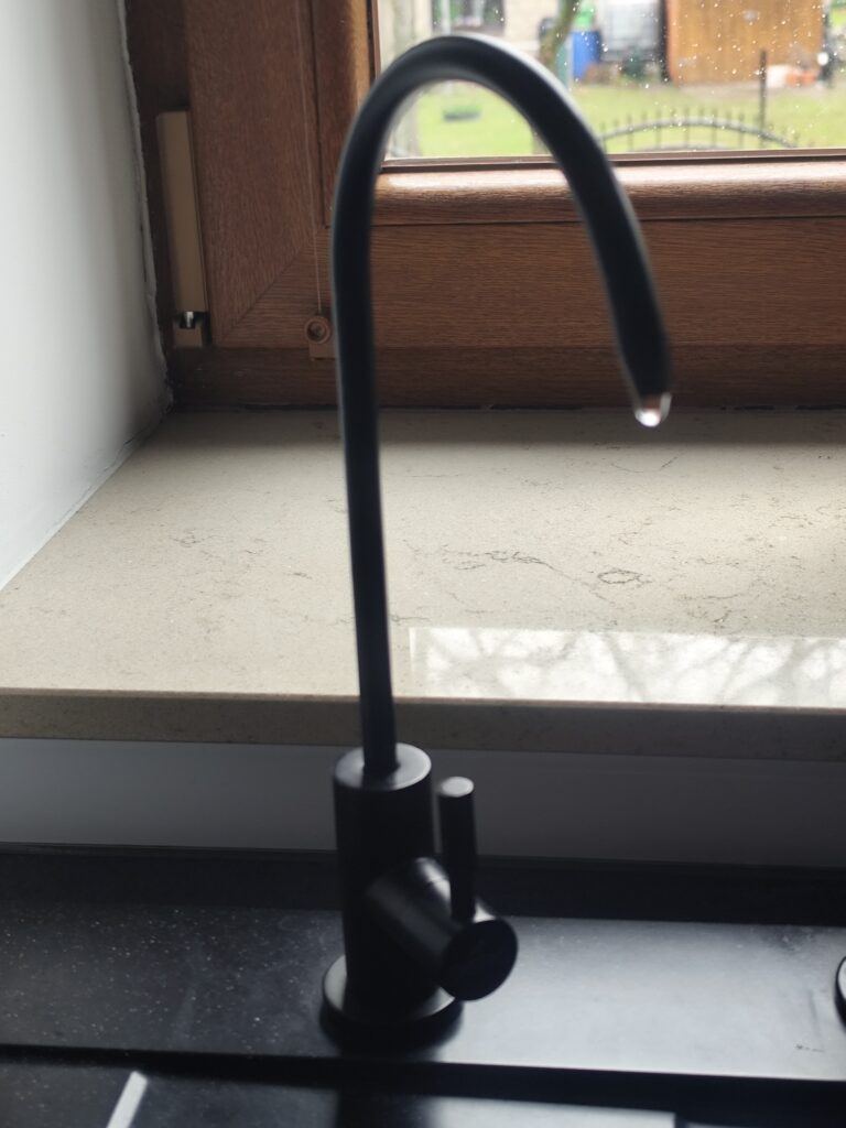 Kolejnym krokiem był montaż osobnej wylewki do wody filtrowanej. W tym przypadku wykonałem otwór w zlewie, a następnie zamontowałem dedykowany kranik.